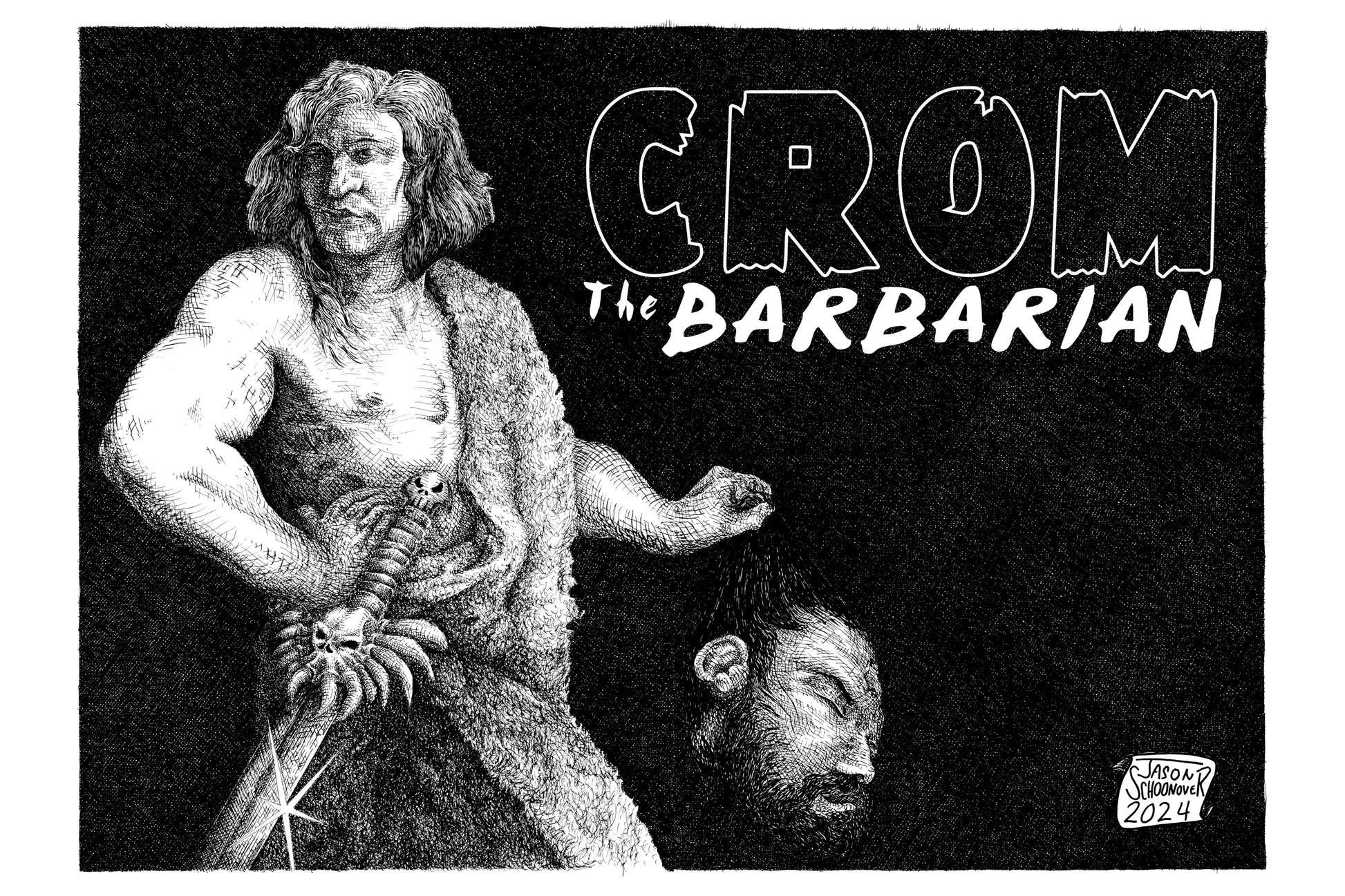 Crom the Barbarian Collected 2024 Revised Edition collects classic Gardner F. Fox sword and sorcery comics including The Spider God Akka, and The Giant from Beyond along with visionary Kurt Brugel's further exploration of the origins of Crom all in beautiful black and white! This cover artwork for this edition was provided by Jason Schoonover.